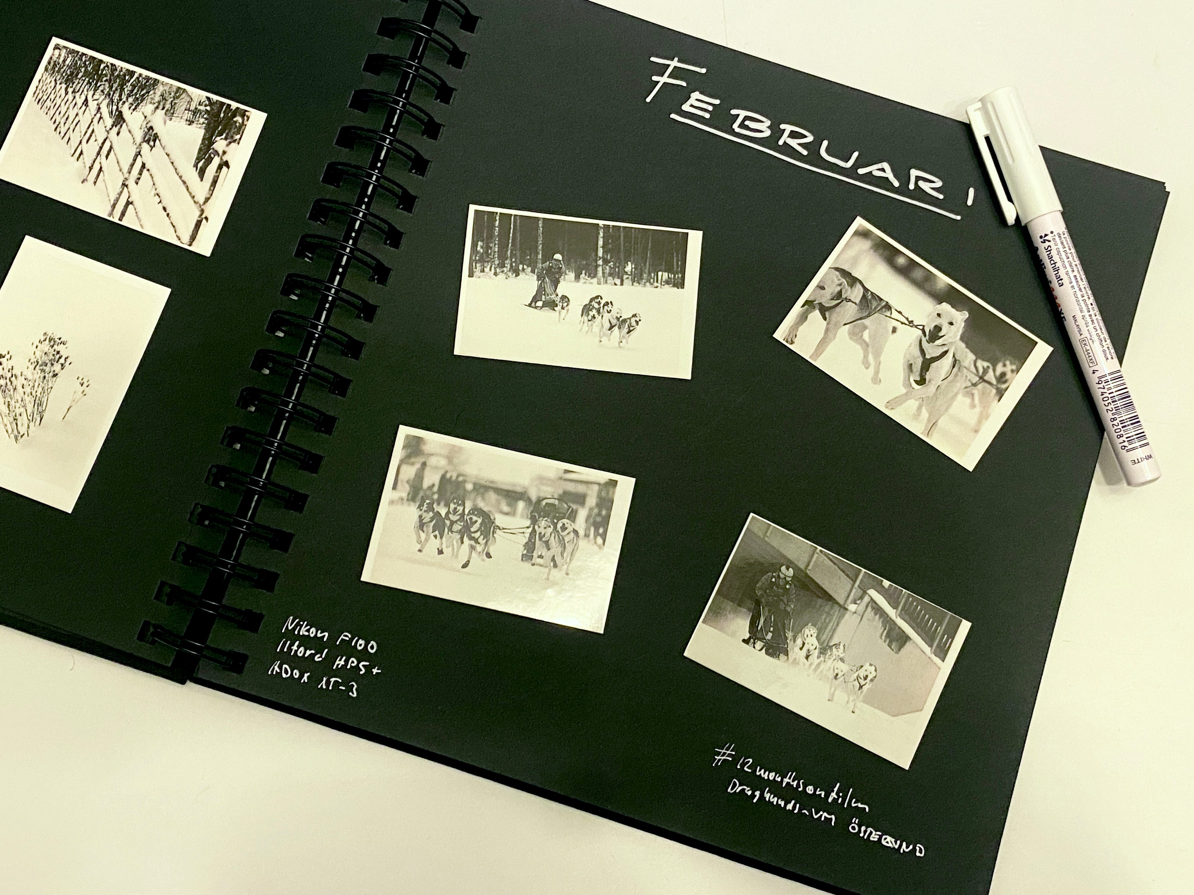 I have been having an eye on scrapbooking for a while, thinking that there is something there to be used for photography, so I bought an empty book with black pages and a couple of white markers.